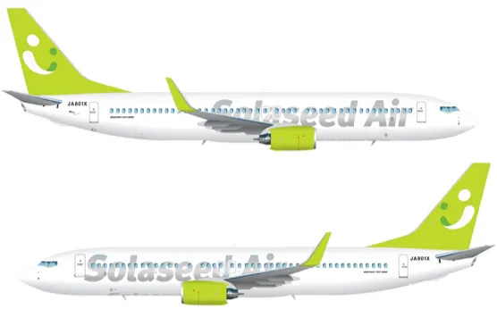 2011年7月に運航を開始したボーイング737-800型機の機体デザインは、全体的にはシンプルな印象の中で、ブランド名とロゴマーク、コーポレートカラーをいかに表現するかを考慮し、それぞれを際立たせたデザインとしています。