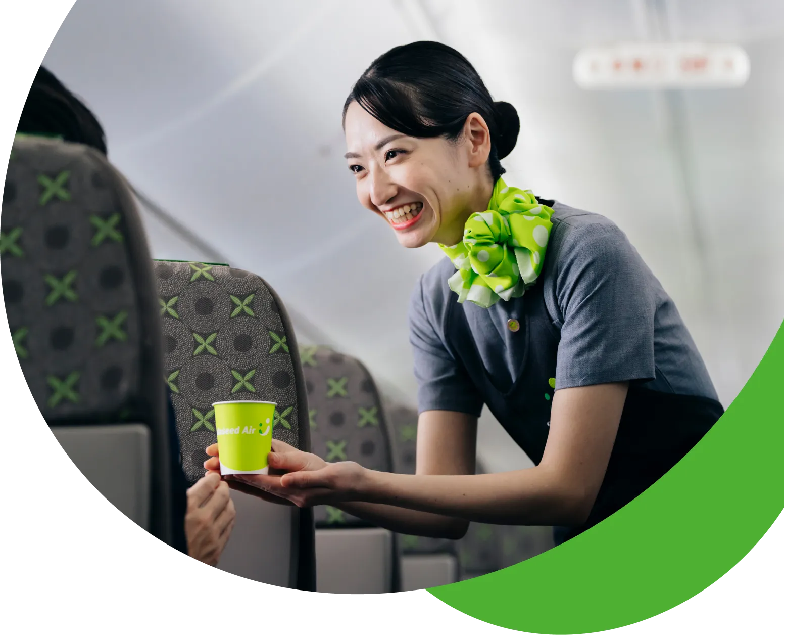 人々が笑顔で「調和」し、そのなかで「共生」する世界観およびソラシドエアの「若々しさ」「成長」を表現し、また、緑豊かな九州をイメージして、このカラーを採用いたしました。