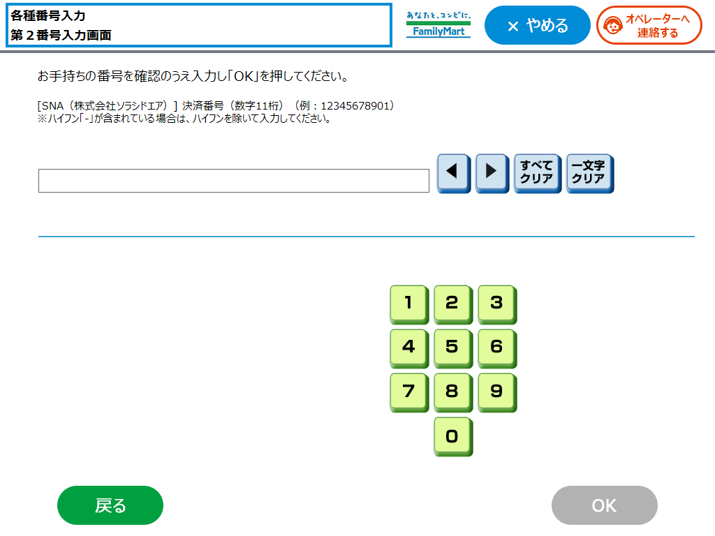 Tap "番号入力 (Number Input)".