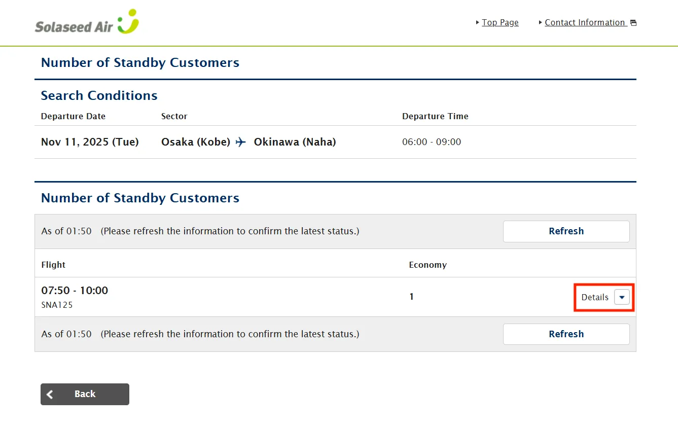 If you click (tap) “▼”, you can confirm the latest number of people on the standby list.