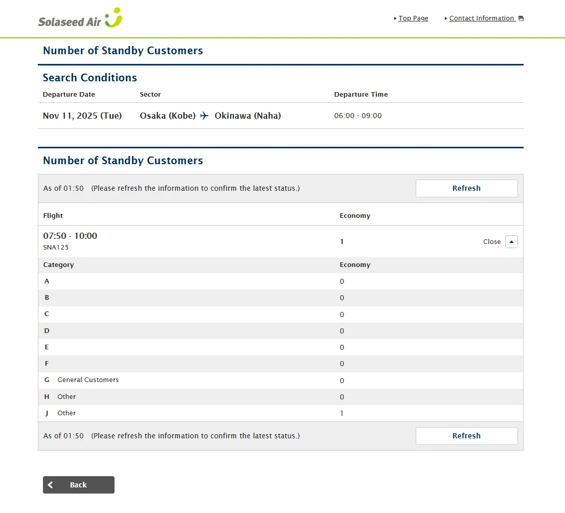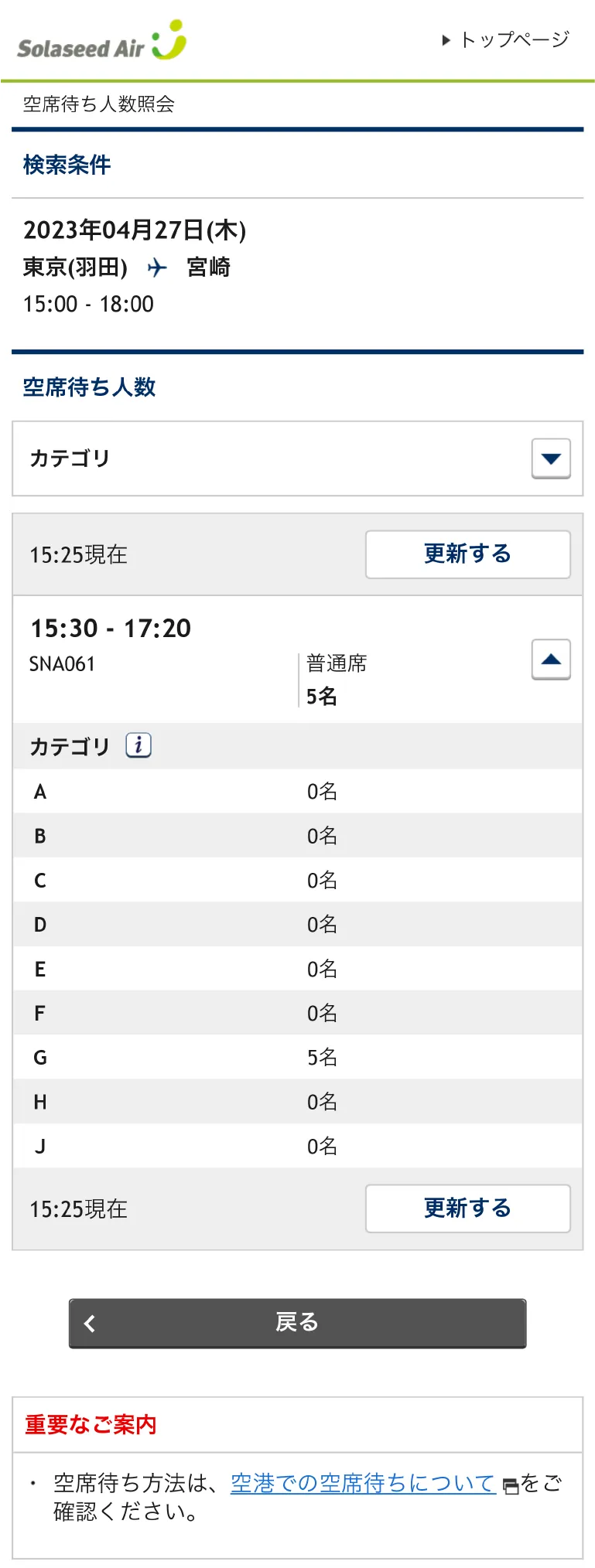 A breakdown of the number of people on the standby list by category will be displayed. To check the latest status, click (tap) “Update”.
