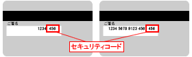 セキュリティコードとは、クレジットカード番号とは別に印字されている3桁または4桁の数字で、カードの利用明細などには印字されません。