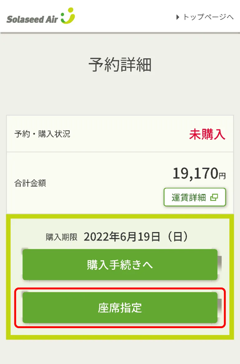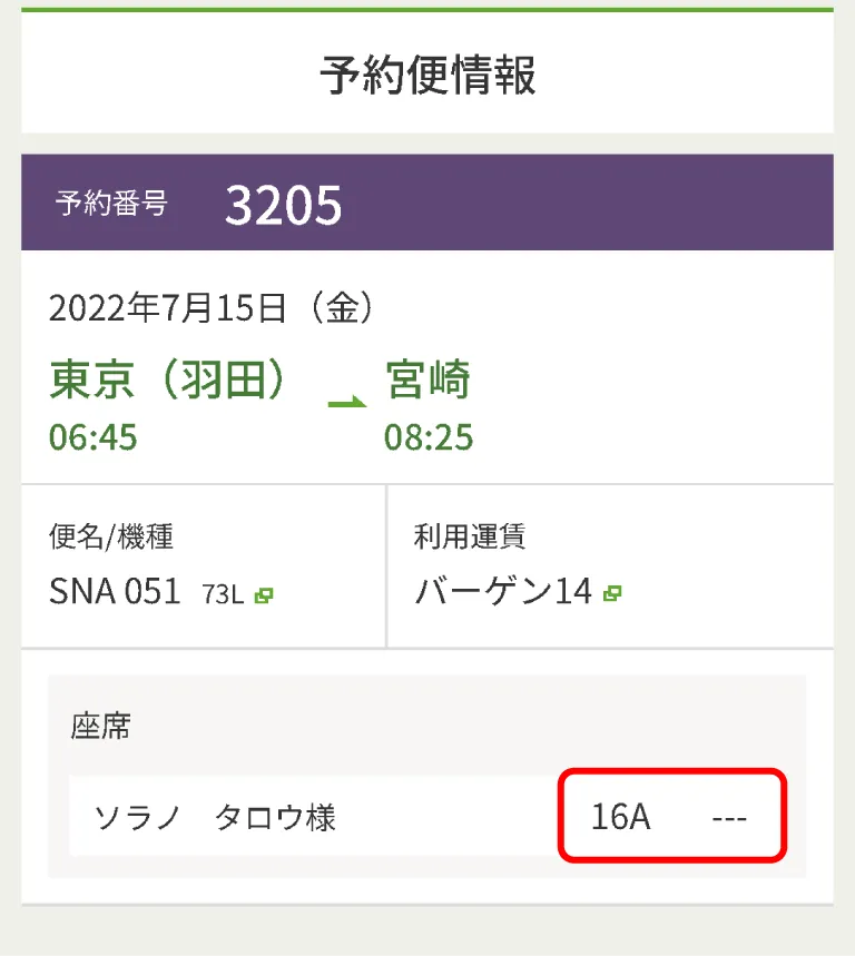 指定したお座席は、『予約詳細画面』の「予約便情報」枠内の「座席」欄からご確認いただけます。